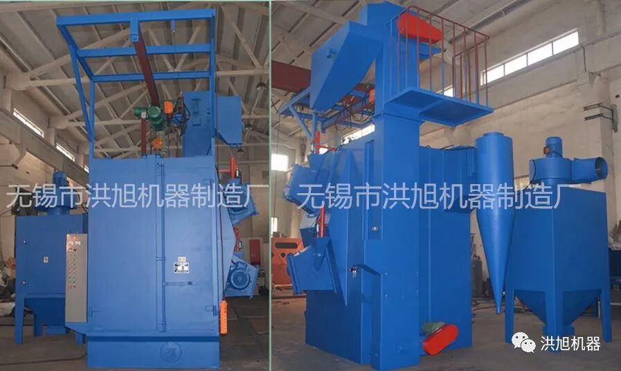 吊鉤式拋丸機分為單吊鉤和雙吊鉤,吊鉤式拋丸機由兩個吊鉤裝載工件交替進入拋丸清理室內。利用拋丸器將0.2~0.8的彈丸拋向工件的表面,使得工件的表面達到一定的粗糙度,讓工件變得美觀,或者改變工件的壓應力提高壽命。本機型廣泛應用于鑄造、建筑、化工、電機、機床等行業的中、小型鑄、鍛件的表面清理或強化處理。